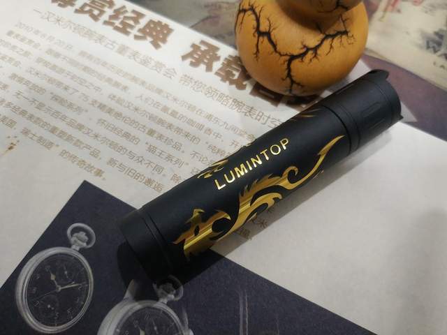 精美的图纹让手电放置在桌面的时候也几乎成为了桌面的点缀。抛开手电的照明功能,把玩、饰品的属性也是非常不错的,这也是常规手电所不具有的。