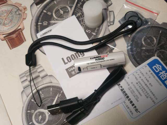 标配的石14500高性能锂电池,带有C口味补给带来了便利。