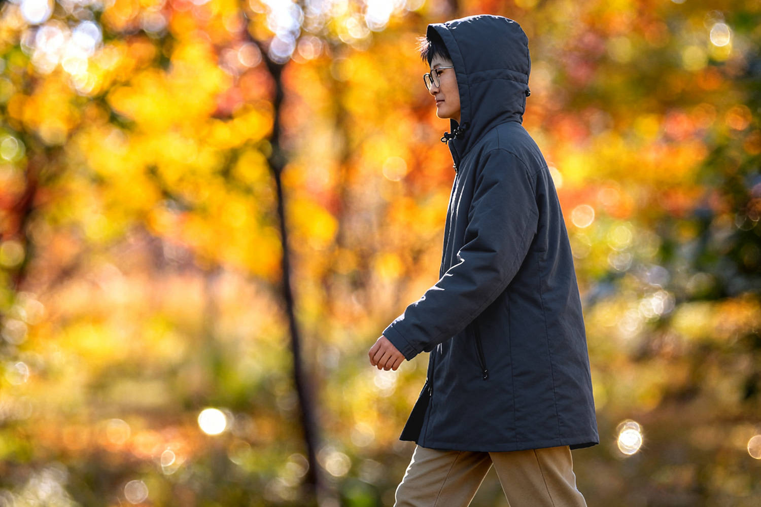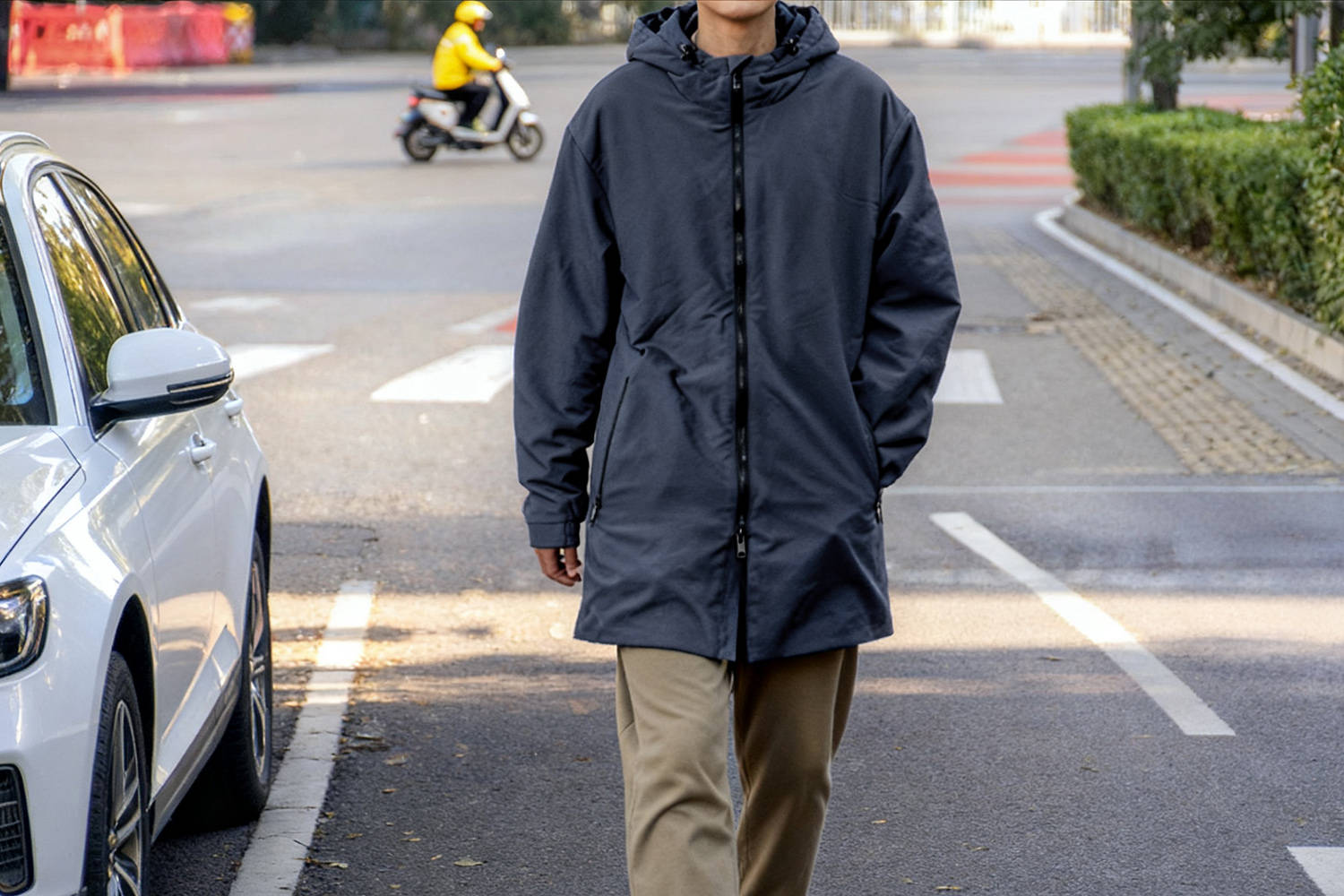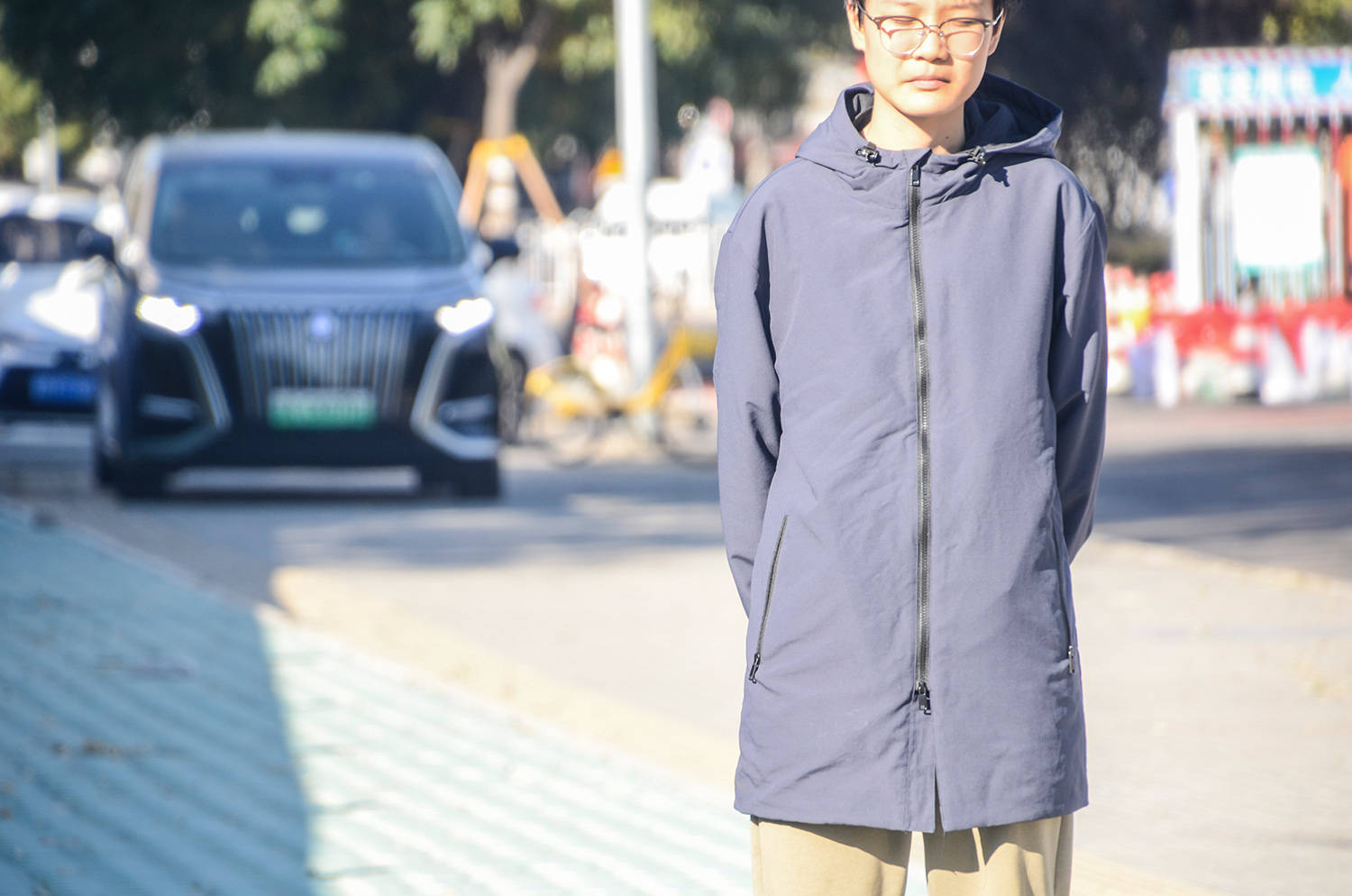 立冬了,更冷了,尤其是北方,树叶黄落,第一场雨夹雪过后,气温更低,白天都接近0℃,走在外面动手动脚冻耳朵,带帽子的长款棉服更适合这个季节。 单导ONE WAY DRY棉服还有一款加长的、加帽子的,趁着双11有优惠就入手了,温暖从头部的保护开始,在保暖的基础上,还能让人更年轻、更帅气。 带帽子,更适合天冷穿人体供给头部的热量占全身的30%左右,头部保暖在冬天更重要,同时也不会冻耳朵,温暖舒适度过寒冷季节。 中年人怕冷,年轻人怕麻烦,连帽设计可以少带一顶帽子,为的就是为了更方便,平时不戴,可以搭在后背上,相当于增加了肩膀、背心的厚度,保证肩周、后背不会着凉。 领口两侧各有一条弹力绳,单手调节设计,可以拉紧以缩小面部、额头暴露的范围,有效防风、减小与冷空气接触的面积。 帽子后面还有一条横向的弹力抽绳,可以让帽子紧贴头部,并且露出两侧,避免转头时出现视觉遮挡,保证更好的安全性。 一体式的帽子,领子和帽子为一个整体,拉紧拉链可以将下巴挡在其中,这样还省去了一条围巾,防止脖子钻风。 领口后侧之内,增加了一条防汗渍螺纹领条,整体触感绵软,纤维结构更细,能够贴合脖子,进一步保暖,有效抗污,保证中年不油腻、青年更清爽。 中长款,干脆利索贴身中长款的设计,不但能有效防止下摆钻风,给大腿和后腰更好的保暖效果,而且能够使人看起来更修长、苗条,要温度、更有风度。 下摆自然垂坠,拉链起始端高于下摆17厘米,可以有效遮挡中年发福的肚子,年轻人好动,平时走路、抬腿,可以就进一步增加活动范围,不会觉得束缚。 后部平整,整体修身款的设计,能够很好地包裹住身体,内部保暖层填充均匀,没有臃肿的感觉。 插肩袖的设计,肩部为一片整体,后部有中缝,两侧也设计了分区,s~4xl,只要选码合适,就能保证穿着舒适。 腋下也是动态分区面料拼接,立体的裁剪,保证更加贴合身体,也不会影响活动的幅度,温暖的同时能够自由畅快无拘无束。 单导C80中长款连帽棉服有黑灰色和青灰色两种面料颜色可选,在保证冬季低调的同时,也是商务穿着常用的颜色,符合男士的穿衣风格,无论是职场商务,还是周末放松,都能休闲百搭。 均填充,动态保暖效果C80是单导棉服的基础款,有单导特性的夹持,能够实现动态保暖效果,中长款进一步降低了最低温标,内穿一件T恤直接套单导C80中长款,可以实现北方干冷状态下的动态温标0℃~22℃,南方湿冷可以达到5℃~22℃。 C80的填充量是每平方米填充80克3M新雪丽棉,有了单导动态面料的科技加持,保暖效果良好,绵软的同时,并不会觉得厚重。 C80有着媲美金标P棉的保温效果,本人比较喜欢户外活动,周末去爬山,山里的温度更低一些,实际也就5℃左右,而且在山里的背阴面,风还挺大,实际并没有觉得冷,甚至还有一点点热,需要拉开拉链透透气。 作为中长款的棉服,下摆有可能会挡住抬腿,C80连帽款设计了双头双线拉链,平常骑车、上楼梯、取裤子口袋的物品更加方便,热了确实也能快速散热,身体内脏核心部位始终保持温暖,保持动态舒适效果。 单导具有良好的单向排热性能,年轻人本来就血气方刚,走在室外不觉得冷,从室外走到有暖气的室内环境,基本也不用脱下来,单导纺织技术具有单向通过能力,身体的热亮可以快速透出,避免了室内外温差大而感到不适。 高科技,为汗为寒而生说到单向排热,就要讲讲单导的单向高科技纺织工艺了,面料采用73.6%的聚酯纤维、26.4%的聚丙烯纤维,这也都是普通的纤维,通过单导的纺织技术,合并成单导动态,就具备了物理单向性,类似半透膜的单向通过性。 内层里料采用的是86.9%的聚酯纤维、13.1%的聚丙烯纤维,材料配比不同,纺织纹理也不同,形成一段一段小的横向纤维结构,保持绒毛状,表面没有涂硅,能够保持透气性,自然也就不会“捂汗”。 内部的填充是100%聚酯纤维的3M新雪丽棉,本身也是松软的透气状态,单导动态通过物理特性将热气排出体外,面料和里料都加入了导电丝,可以有效防静电,这在北方冬季非常实用。 除了抗冻,单导全新面料还具有良好的遮热效果,能达到>50%的遮热率,防晒遮热抗紫外线UPF>50,可以实现多波段防紫外线损伤,户外穿非常合适。 冷而保暖、热而排汗,穿单导汗液快速排出体外,不残留有机物质,而且是纯物理变化,没有化学试剂,也可以有效避免细菌真菌滋生,实现久穿不臭,抗菌能力达到3A级别。 单导面料还做了杜邦特氟龙原液涂层表面处理,显著增强防水效果,雨雪天气丝毫不惧,也能有效对抗油污。 精工制,用料细致考究单导C80中长款保持了一贯的精细工艺,面料的裁剪、拼接、缝制都一丝不苟,内部也没有什么多余的线头,填充均匀,没有异物感、不适感。 尼龙弹力绳结实耐用,锁定稳固,按压的位置还有防滑槽,单手操作灵活方便。 大品牌YKK双向拉链,衣襟内部还有防风衬条,既不钻风,也会透雨,避免外部冷风的入侵,减少体内热量的散失。 袖口采用半弹力设计,内部也有填充物,保持一定宽松度的前提下,**足够的活动空间,给腕部足够的保暖防护。 C80中长款设计简洁,外部两侧各有一个主兜,采用直开拉链形式,有效防止物品丢失,具备足够的大容量,双层面料,手放在口袋里也不会觉得冷。 左胸内部还有一个纵向拉开的带拉链内口袋,进一步增加了物品携带能力,重要的物品贴身收藏,安全性更高。 单导C80中长款连帽棉服,外观很低调、保暖很到位,仅在下