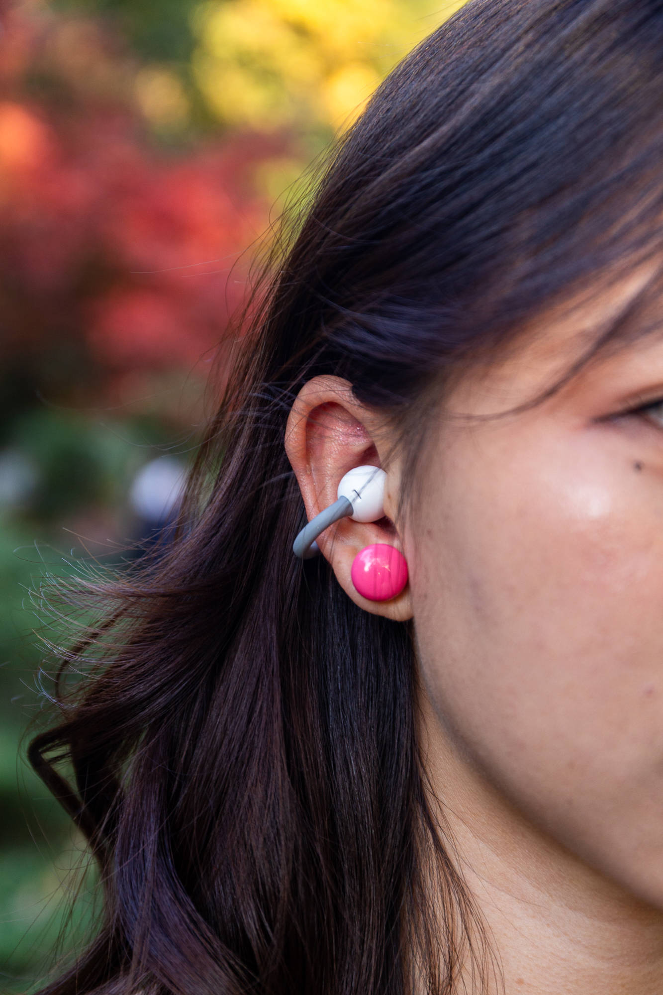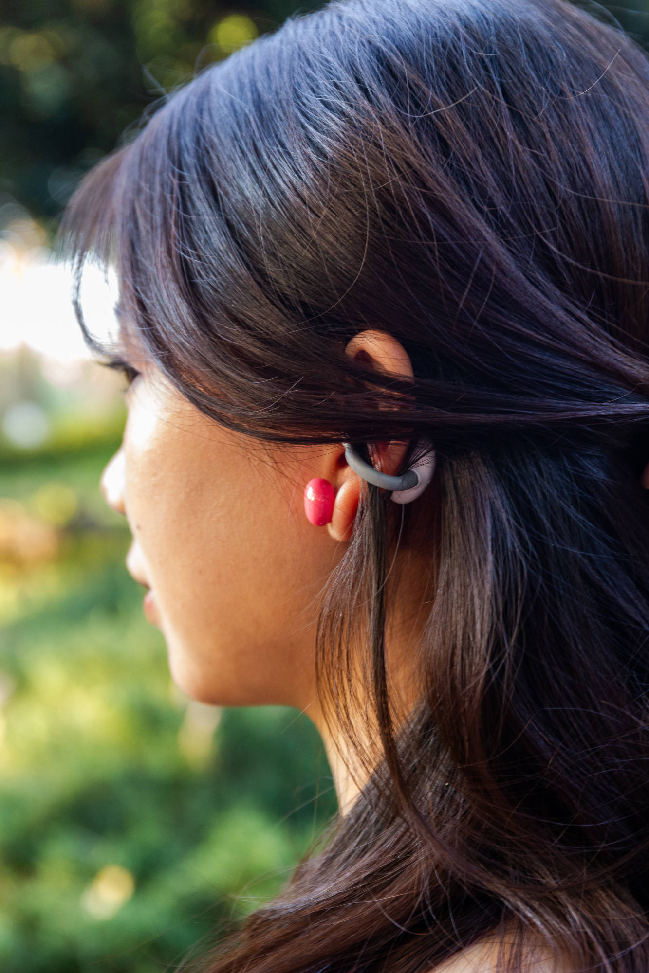 虹觅 Air2耳夹式蓝牙耳机,采用契合人体工学的2.5mm错位设置,前高后低,让耳机可以更好地契合耳廓,提升佩戴的稳定性,不妨碍运动或者出行旅游,无需担心耳机的意外脱离,这种错位设计,让佩戴更加稳固。