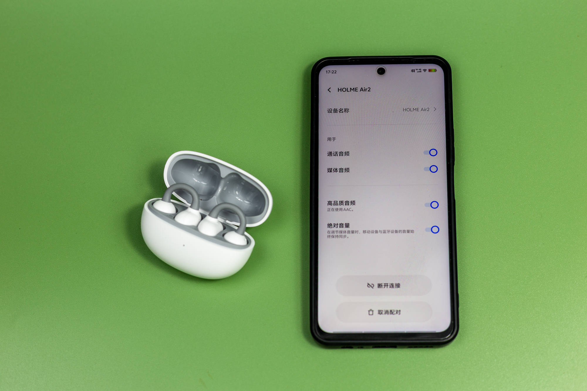 虹觅(HOLME) Air2小云夹,是一款耳夹式蓝牙耳机,蓝牙编解码格式AAC、SBC,蓝牙版本5.4,有效传输距离10米。这款耳机有黑和白两种颜色,我比较喜欢纯洁干净的白色款。