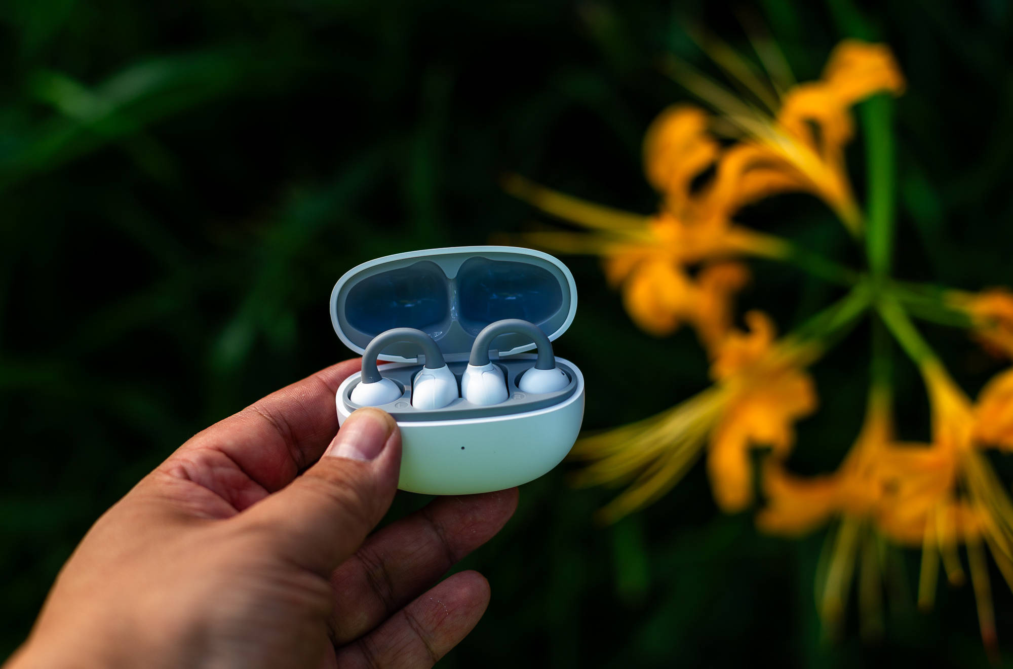 1开放式耳夹设计,更健康给安全,轻量化机身,弧面耳托佩戴更舒适