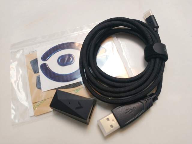 配件共有:说明书、USB转换器、1.8m长的伞绳数据线,还有按键防滑贴,这满足了玩家们在高强度游戏场景中的使用需要。