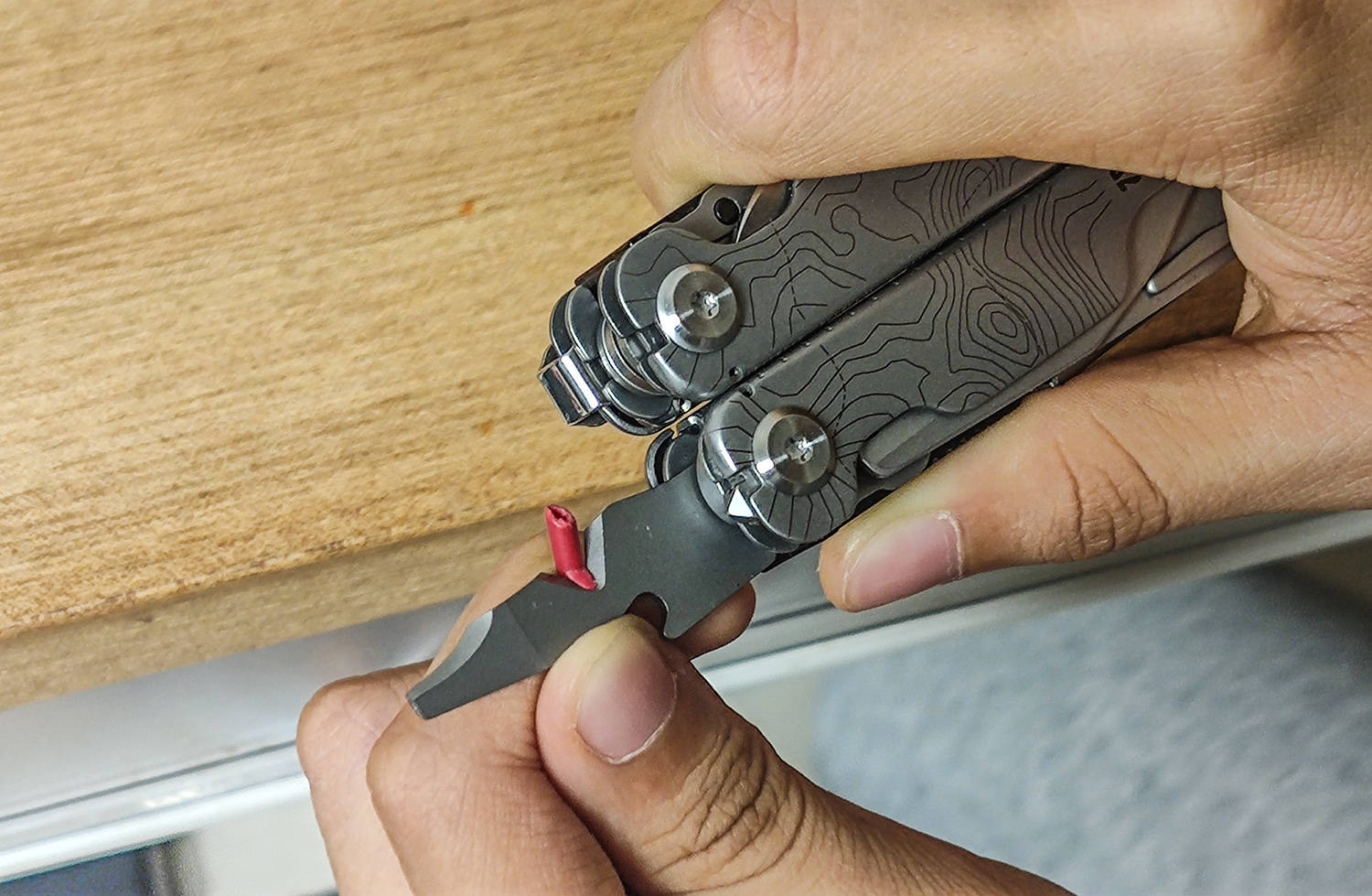 作为一个户外活动爱好者,我总想把自己的EDC 装备从“便携工具”升级为“场景刚需”,特别是对于多功能钳,我认为其核心价值早已超越“多合一”的基础属性,而是需要在极端环境下稳如磐石,在应急场景中快准狠,更要在日常使用中兼顾手感与耐用性。 KLARUS(凯瑞兹)作为战术装备领域的硬核品牌,推出的 MT07多功能钳堪称EDC和户外硬核的混搭,集20种实用功能于一身,从野外生存到日常应急,用粗犷的机械质感与强悍的性能表现,重新定义多功能钳的“硬核标准”。 等高线:粗犷美学与人体工学的双重暴击拿到 KLARUS MT07 的第一感觉,是“份量感带来的安全感”,整钳采用高品质不锈钢打造,强壮有力的条件下,净重只有280g,上手沉甸甸却不臃肿。 闭合状态的长度仅106cm,宽度39.3mm,厚度22mm,折叠后可轻松塞进战术腰包、背包侧袋,甚至牛仔裤后兜,完美平衡“便携性” 与“适手性”。 为了在危急时刻助你一臂之力,Klarus给MT07标配了一款高品质的硬质翻盖尼龙套,可以挂在腰带上,随你走天涯,该出手时就在你的手边。 如果你喜欢更直接一点,MT07也有独立的背夹,直接别在腰间、裤兜、MOLLE,方便随时取用,而且独立背夹还是可拆卸设计,进一步增加便利性、随意性。 最亮眼的当然是手柄的等高线外观,再加上双面激光彩色镭雕KLARUS商标,10倍时间雕刻带来更清晰深刻的印迹,带给你不一样的视觉感受,带给你户外的直接体验。 作为多功能钳,全靠折叠增加功能,紧凑性、易开合、快使用是其灵魂所在,浩瀚MT07在其区区22mm的手柄厚度内,装下了20样功能,而且边缘打理得圆润不硌手,确实紧凑多能。 从使用手感来讲,MT07的尺寸适中,可以作为重型钳使用,手柄敦实、手感扎实,机械结构稳定,没有摆动的旷量,操作起来运用自如,钳子开合阻尼适中,无需过度用力即可顺畅展开所有工具,女性用户也能轻松驾驭。 手柄边还有公制、英制两种刻度,随手可以测量,两只手柄刚好可以连成连续的更长的量程,而且刻度线刚好可以作为防滑纹路,握住钳柄使用时可以更稳定。 主力钳:可替换钳口使用更加随心所欲钳子是MT07的主体工具,采用折叠钳炳的方式打开,钳体采用高品质不锈钢整料CNC切削而成,其强度远高于一体化锻造的钳体,能够经得住暴力使用。 钳身线条硬朗,通过主轴与手柄连接,内部自带弹簧蓄力,钳柄张开角度约为50°,钳口张开角度约为30°,满足单手灵活操作的范围。 钳体分为:尖嘴钳、标准钳、切线钳、剪线钳共4部分,30Cr13马氏体不锈钢,淬火硬度达到了HRC52左右,钳口咬合紧密,尖嘴钳部分18.5mm,钳齿对齐度很高,保证了夹持紧密、有力。 标准钳带有弧形钳齿,主要的作用是固定或者拧动螺丝,最大可以夹住21mm外径的螺丝,可以牢牢钳住螺帽的六角,形成强有力的夹持,也可以用作夹住别的工件,起到固定工件的作用。 再向下是切线钳,根部带有豁口的是硬线钳,作用都是切断功能,MT07采用可更换钳口,使用的是K40钨合金剪片,硬度更是高达HRA90左右,可以剪钢丝,不易崩刃,即便坏了也很容易更换,实用性更强。 钳口根部的力臂最短,能够获得更大的剪切力,实际操作,稍一用力,就可以轻松剪断1.5mm的钢丝。 MT07的剪线钳硬度高、咬合度高、剪力强,钢丝断口整齐,钳口毫发无伤,经得起强力使用。 四金刚:切锯磨剪样样精通MT07不用开钳,手柄两侧内收四支全尺寸的附属工具,通过主轴螺丝固定在钳柄一端,可以快速实现切、锯、磨、剪4种常用的功能。 4样全尺寸工具全部展开后,都采用根部弹片线锁的形式固定,确保在使用中不会因发力方向而折叠,保证了使用安全。 为了保证开合顺畅,附属工具转轴的位置都采用铜制垫片,利用铜的自润性,保证转轴灵活,同时也能尽可能压紧工具的根部,实现“不点不摇”。 每样工具都有快开孔、快开勾等设计,方便单手快速打开工具,一推一转、固定到位,在户外使用时更加灵活方便。 主切削工具采用50Cr15MoV优质合金钢,高精密数控水磨精加工而成,硬度达到HRC56左右,表面拉丝处理,边缘都做了钝化处理,耐磨防锈、手感舒适。 刃长约为7.5厘米,尖端圆弧过渡大于65°,微弧平刃便于切削,无论户外使用,还是临时削水果、削铅笔都很方便。 同侧手柄另一样工具,主体是锉刀,通过勾住前端的指槽打开,交叉排列的锉齿平整度高、硬度大,可以打磨木材、金属的锋利边缘,以修正形态。 锉的其前端是小的撬棍头,可以起钉、撬坚果壳等,是日常生活好帮手。 锉刀另一面也是公制、英制刻度尺,在打磨的同时,可以随时测量工件的尺寸,以达到最合适的状态。 另一侧手柄之内有木锯,同样的高硬度不锈钢,锯体做了减薄处理,锯齿采用交叉双齿设计,锯齿行程长度约为7.3厘米。 最近我迷上了DIY木头,去户外总要随手搞点木材,MT07的双齿锯工作效率高,双齿排木屑速度快,减薄不易塞锯,5厘米左右的木棒半分钟就干完了,也不用担心湿木会让锯子生锈,有大神看到这里,能否告诉我怎样防止木材干裂? 同手柄的另一样工具为折叠剪,弹片支撑保持张开,剪刃长度约为2.2厘米,弹性张角约为35°,同样材质的高硬度不锈钢,确保剪切有力。 折叠的钳柄作为剪刀手柄刚好能稳稳握住,拇指的压点还设计有防滑槽,下压剪动,抬指又能自动张开,剪切效率高,只要捏合手柄,就能感觉到弹簧的弹力,从而保持剪切过程中的稳定手感。 五小件:全面拓展实用功能浩瀚MT07的手柄内部还有3+2=5个小工具,