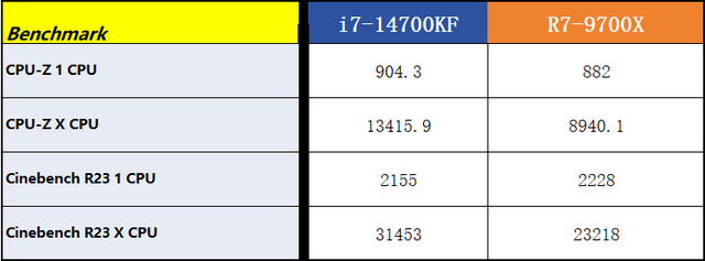 综合而言,14700KF更胜一筹,9700X却未达到预期。