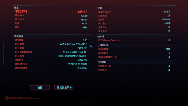 14700KF的最高帧率为150帧/秒、最低为111帧/秒,平均帧率稳定在130帧/秒;