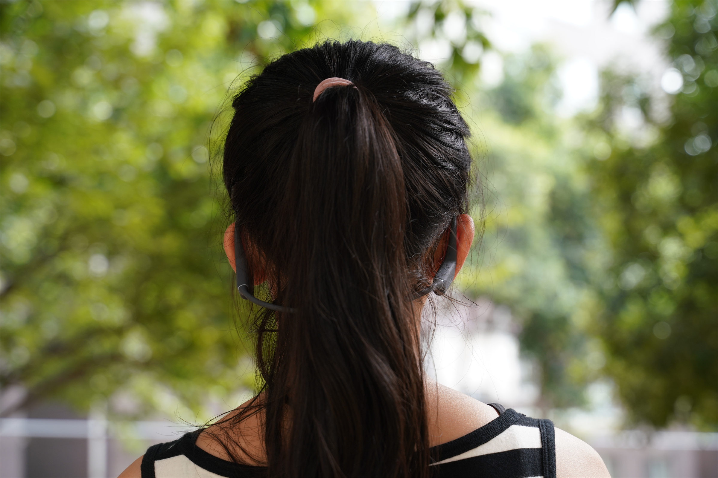 音质增强器和Runner Pro5组合的样式如下图,辅以35°可调双形态灵动设计,可以让用户可以根据自己的头型和耳部结构进行个性化调整,确保佩戴稳定不易滑落。