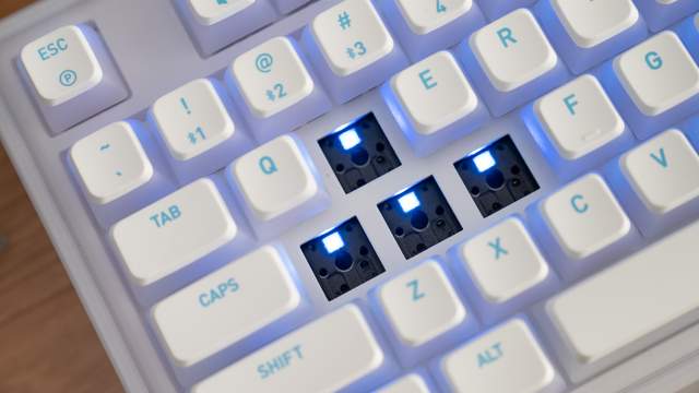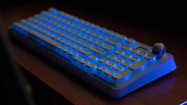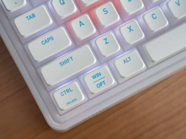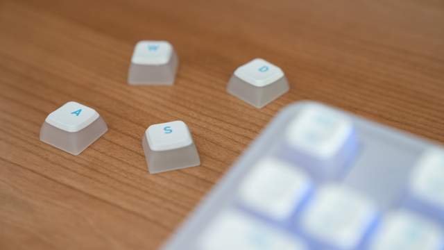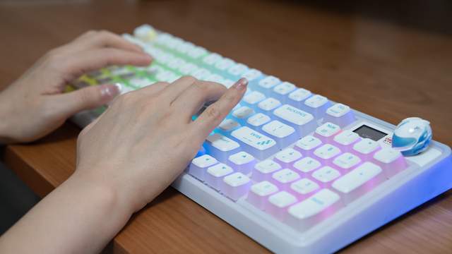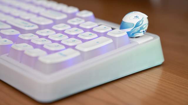 另外,PIXIU98并不是简单的应用了蓝白配色,而是采用了整体分层渐变的设计,质感拉满,看起来很高级。自下而上的看,呈现了由实到透的变化,依次为不透明的底盖、80%半透的上壳以及50%透明的键帽,虽然没有应用很“贵气”的铝坨坨,但这样的质感、这样的效果,着实讨好眼睛,斩男又斩女!