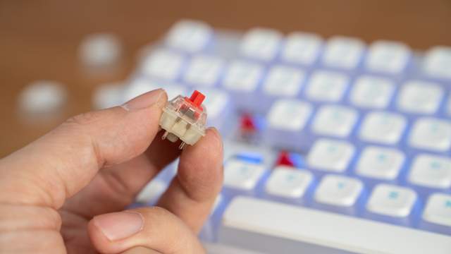 内在方面,PIXIU98 搭载了CHERRY MX2A轴,我这把配备的是MX2A红轴。MX2A轴是CHERRY去年推出的全新轴体,通过结构升级、技术优化以及厂润等一系列手段,全面优化了轴体在手感一致性、顺滑度方面的表现,另外,击键音和轴体寿命方面方面也有较大的提升。
