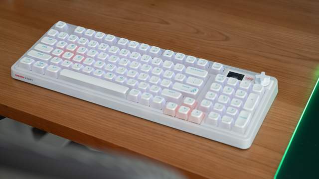 这把CHERRY的PIXIU98真的超值了!千元出头的价格,买到传统大厂CHERRY的客制化键盘,98配列广泛适用、赛车风格高颜值设计、主流三模连接、全键热插拔MX2A轴体、Gasket结构、LCD全彩屏、顶尖低延迟性能表现等一应俱全,你想要的、需要的,一站式都给安排到位了,相当厚道,我不由得觉得,现在大厂都这么卷了,小品牌还咋活? 再说几点我眼里的不足啊,如果键帽字体采用透光设计、轴体安排透镜,那么灯光效果会更进一步;2段式折叠支脚,尤其是大支脚可以收放可以再顺滑一点!