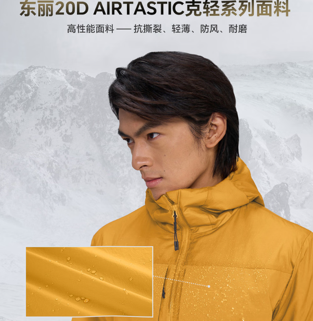 外层选用东丽20D AIRTASTIC克轻系列面料,其中前胸拼接40D+70D锦纶氨纶混纺材质,表面经DWR防泼水处理,水珠可凝结滑落,小雨天气也能保持内层干爽。面料抗撕裂强度达五牛顿,远超同克重普通面料,指甲刮擦或树枝剐蹭均不易留痕,耐用性出众。