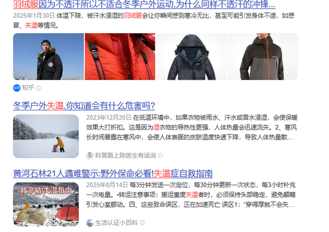 二、户外保暖选择:棉服与羽绒服对比及棉服挑选指南或许有小伙伴会想到羽绒服,羽绒服保暖性能出色,但存在明显短板:惧怕潮湿。一旦被打湿,其保暖性能会大幅下降,进而增加人体失温的风险。户外棉服通过填充聚酯纤维、聚丙烯纤维(如P棉、C棉、T棉、新雪丽棉等)合成保暖材料,利用锁住空气形成隔热层来实现保暖。这类材料不仅具备良好的保暖性,还拥有快干、抗湿、轻便的特点,即便在潮湿环境中,也能保持一定的保暖效果。