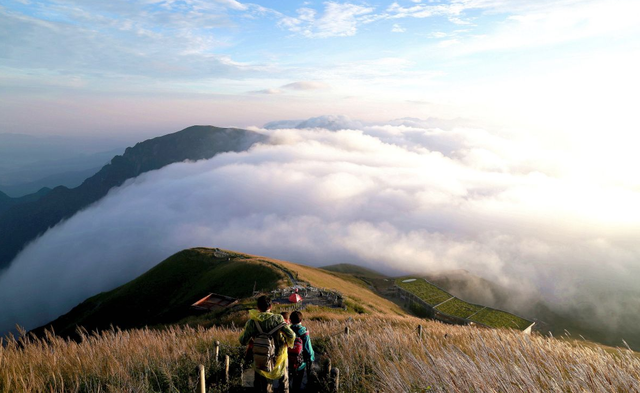 3. 高级难度:江西武功山——草甸云海+星空露营特点:海拔1918.3米,经典路线 “沈子村 - 金顶” 全程约15公里,秋季草甸金黄,云海概率高,晚上可在金顶露营看星空;部分路段陡峭,需要穿防滑鞋,适合资深登山爱好者。 穿搭建议:棉服外搭防风冲锋衣,内搭保暖速干内衣;山顶夜间温度低至5℃,棉服的保暖性刚好应对露营需求。 小贴士:建议带轻量化露营装备,提前查天气预报(晴天云海概率更高),山上补给较少,需自带干粮。