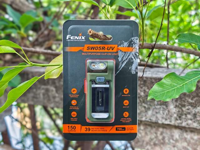 一、简约专业的包装与军绿外观SW05R 的包装延续了 Fenix 一贯的简约风格,挂式盒上搭配品牌标志性的橙色元素,正面清晰印着产品外观和核心卖点,整体透着专业感。