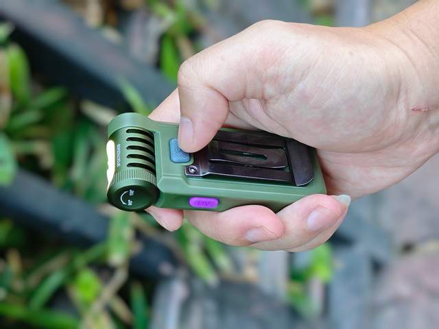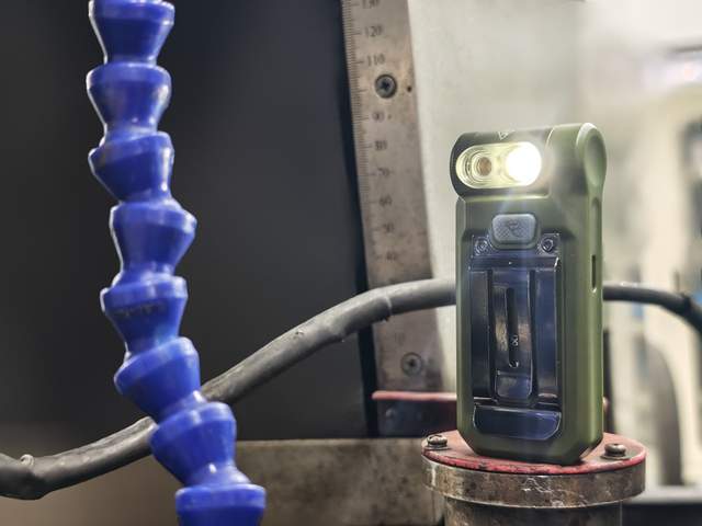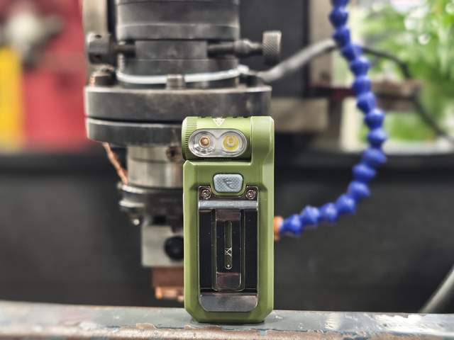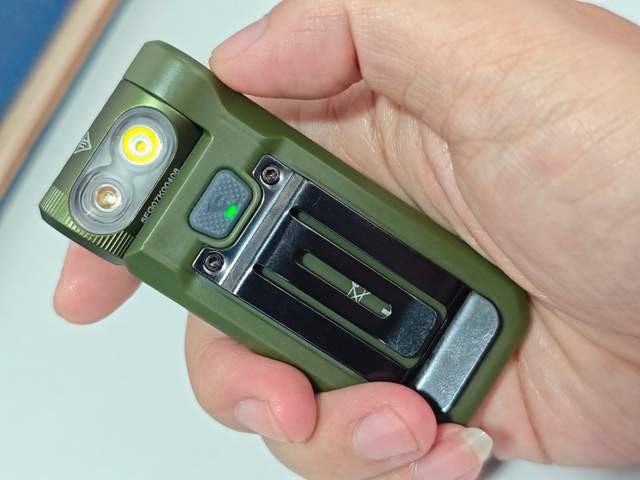 这款手电筒选择了军绿色作为主色调,不仅视觉上沉稳大气,还具备一定的耐脏性,即便在油污、灰尘较多的工作环境中使用,也不会轻易显脏。灯身表面采用了细腻的磨砂工艺,触感舒适且防滑,手持时能牢牢贴合手掌,即便手心出汗也不用担心滑落,为工作时的握持安全性**了保障。