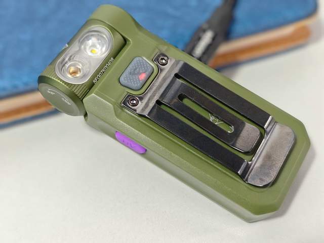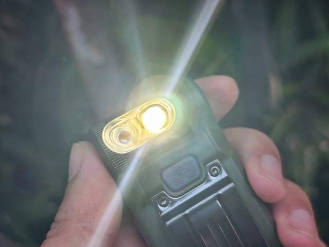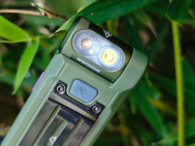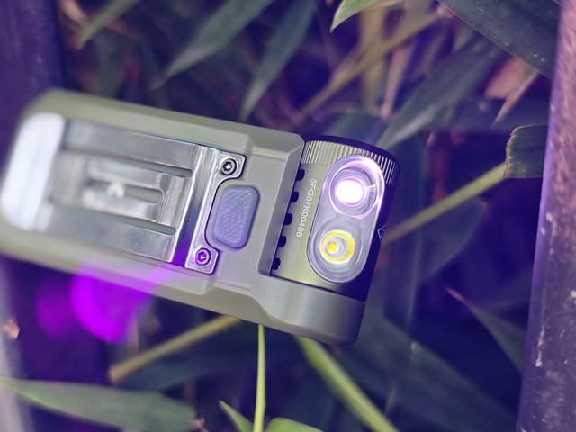 可以看到手电为双光源的设计,在一颗高性能LED灯之外还有一个紫光辅灯(另外有红光的版本),同时还从官方参数和实际使用体验来看,灯珠的发光效率和稳定性都十分出色。