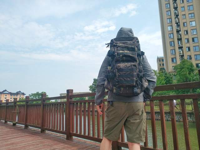 打包并进行捆扎紧固的情况下。重心自然调整到合理舒适的位置,包身背部与身体贴合良好。这时候的扣件不会有松脱等不良情况。出行活动的过程中外挂也牢固稳定。