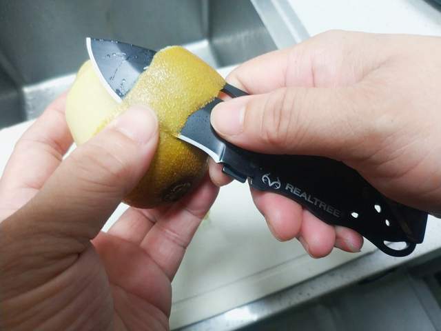 整个切削果皮的过程可以说是丝滑的。这样的效果也有来与刃面的镀层,流畅切削的同时也易于打理,另外还有增加防腐蚀的效果。