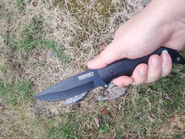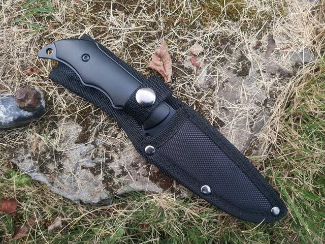 产品的全长21.5cm,420刃材,具有一定的硬度和韧性。表面黑色镀层,便于打整也带来了防腐蚀的效果。一体龙骨,也使得其具有出色的刚性。铝合金手柄轻质、耐用且具有趁手的操作手感。