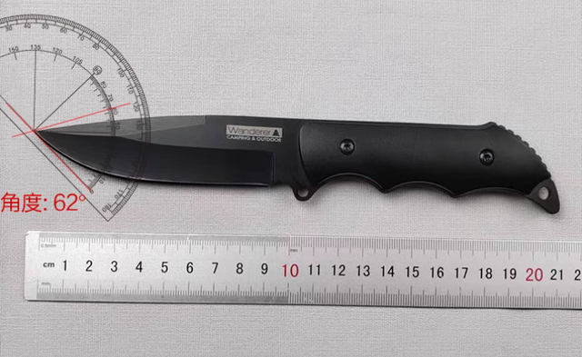 其总长度为21cm,刃长9cm,尖部角度62度。符合法律法规。当然,什么能不能上飞机、带上地铁之类的问题就不用问了。