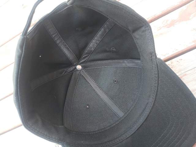 翻转后看内里的部分,上有的拼接位置均有包边处理,包边的走线均匀、规整。 同时可以看到鸭舌帽内里吸汗带。吸汗带由薄尼龙材质制成,具有不错的弹力,佩戴后能够紧密贴合头部,保持头部干爽。 观感上看这款帽子吸汗带的设计特点是在帽围的内侧设置了一圈弹力带,这使得鸭舌帽在炎热天气下佩戴时,不仅能够通过透气孔散热以防止闷热,还能够通过吸汗带吸收汗水,从而让佩戴者感到更加舒适。另外,吸汗带采用轻质、高性能的材料制成,可环绕头部吸汗,避免运动过程中汗水滴落,进一步提升佩戴后的舒适度。