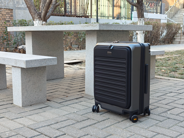 地平线8号创想家系列的特点还是很突出的!通过合理的设计,在20英寸行李箱的基础上,扩容出了前置商务舱,方便快速取放电脑等常用物品的同时,实现1>1+1的效果,除此之外,宽拉杆省力、“小黄轮” 静音顺滑稳定,也都是为差旅减负的加分项;材质上,高密度尼龙材质+德国科思创 PC 材质的组合,坚固耐磨、皮实抗造,又提升了整体的设计感和辨识度。