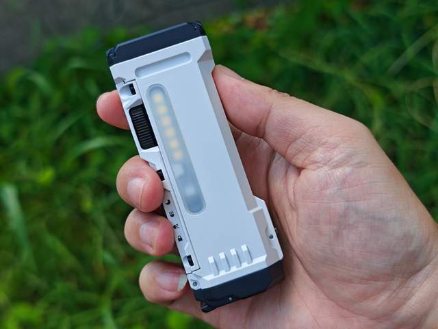 6 颗白光灯珠**范围照明,当开启侧灯的白光模式时,光线柔和且均匀,非常适合在近距离范围内使用,比如夜间在帐篷内阅读、整理物品,或者在黑暗环境中寻找掉落在地上的小物件等。