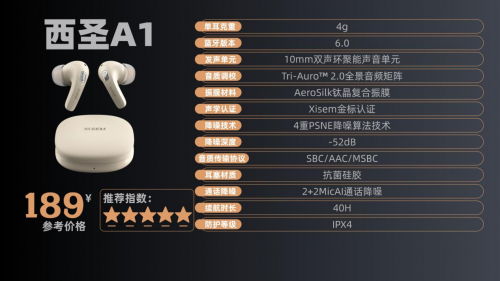 500元以内降噪耳机哪款好?500元以内降噪耳机推荐前十品牌 500元以内降噪耳机哪款好?1、西圣A1蓝牙耳机 售价:189¥ 推荐指数:★★★★★ 在众多蓝牙耳机品牌中,西圣是国内率先打破“音质与价格壁垒”的开创者。凭借十余年在音频解析领域的深厚积累,西圣在蓝牙音质赛道中展现出领先的专业实力。它最大的优势在于坚持“平价也能听见高品质”的理念,用不到十分之一的价格,实现千元级音质体验,真正做到了越级而不溢价。 西圣A1耳机之所以如此受欢迎,还得从耳机的音质说起,把千元级才有的听感压进了百元机的价格里,核心配置上直接用上了高端耳机才有的AeroSilk™钛晶复合振膜,搭配10mm双声环聚能单元与发烧级HIFI DSP芯片,低频下潜深且富有弹性,中高频解析细腻、层次分明,整体三频表现极为均衡。更别说这次还请来了高端定制品牌的调音师亲自参与调校,再加上升级后的Tri-Auro™ 2.0全景音频矩阵,在声场深度、方向感、氛围渲染上全面提升,呈现出媲美旗舰级耳机的沉浸感。不少专业测评师实测后,直接评价这款是真正把旗舰音质拉进百元档的代表。 市面上的降噪耳机不少,可惜大多停留在“听起来像有用”的阶段,噪声没少,音质反而被拖累。西圣A1反其道而行之,搭载全新第四代PSNE多维降噪系统,采用2颗前馈+2颗反馈麦克风,组成ALPT高密度声源捕捉阵列,通过对环境噪声实时识别建模,配合自主调优算法,实现高达52dB的主动降噪深度。另外蓝牙6.0芯片和共振原理优化腔体设计,软硬件协同实现百元价位旗舰级降噪表现。