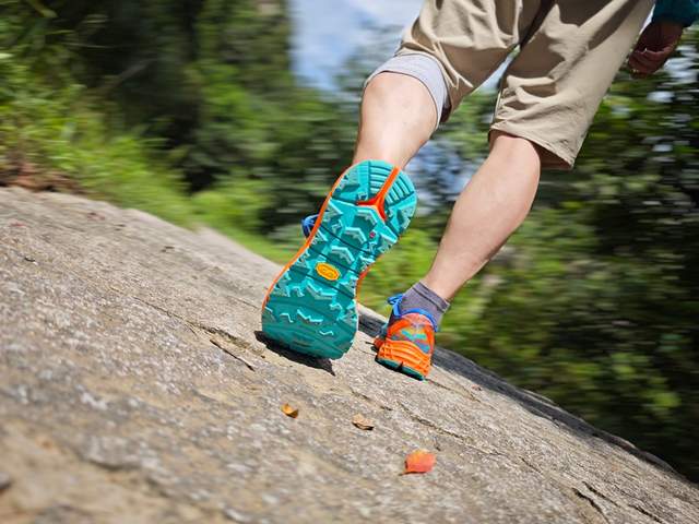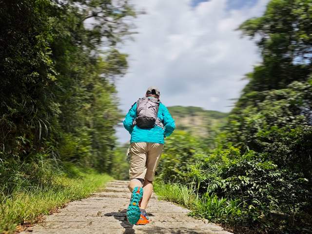雨后的路段是防滑测试的 "终极考验",湿滑的草木树叶和松软的腐叶层让很多鞋子束手无策,但这款鞋凭借 VIBRAM 大底与鲨齿设计的双重加持,依然能**可靠的抓地力。