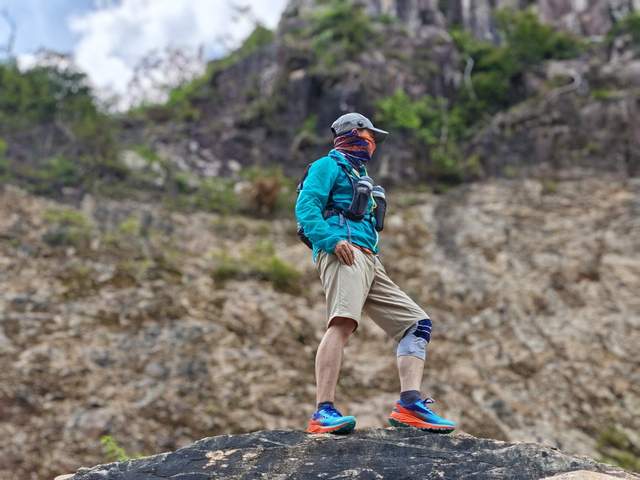 2. 减震回弹:长距离徒步的 "缓冲垫" 在连续下坡的草垫子路段,中底的减震性能得到充分体现。每一次脚掌落地,都能感受到中底对冲击力的有效吸收,膝盖和脚踝没有明显的不适感。选手高新表示,这款鞋的减震效果出色,"陡坡直接下到底,不用担心滑倒和震伤"。