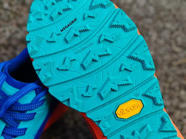 三、核心科技:全地形性能的硬核支撑1. VIBRAM 湿地防滑大底:湿滑地形的 "稳压器" 作为越野鞋的核心竞争力,SWIFT2.0 搭载了 VIBRAM Megagrip 湿地防滑大底,这也是众多专业跑者推崇的配置。在雨后柏油路测试中,能明显感受到鞋底与地面的紧密贴合,摩擦系数远超普通户外鞋,即使快速转弯也没有打滑迹象。