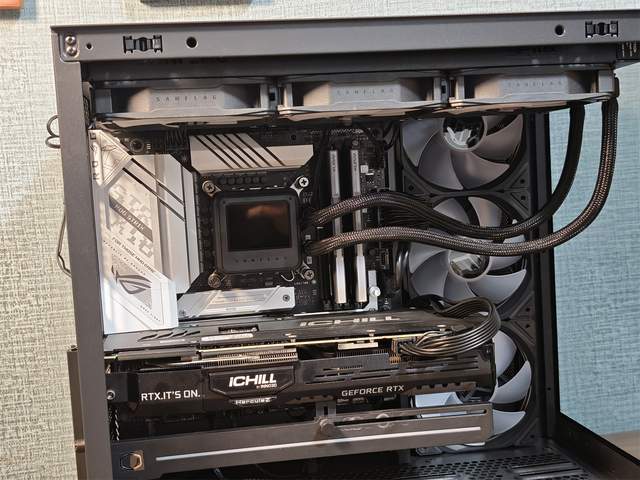 这次装机按照“电源→水冷→主板→风扇→显卡”的顺序进行,全程耗时约不到1小时,对新手十分友好。