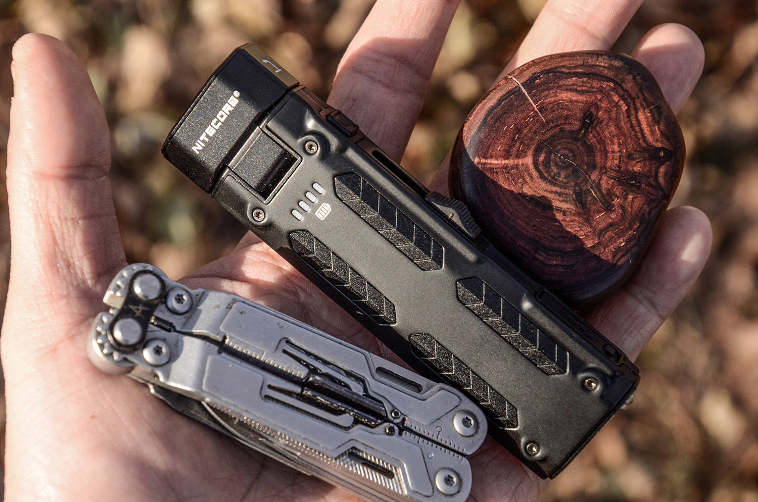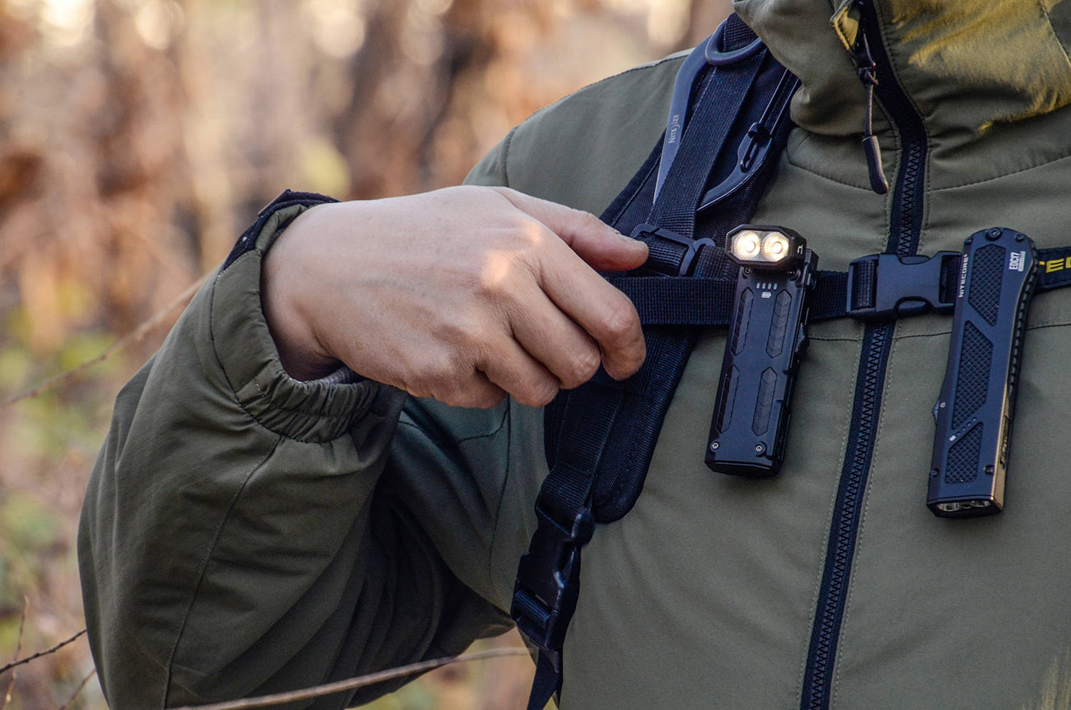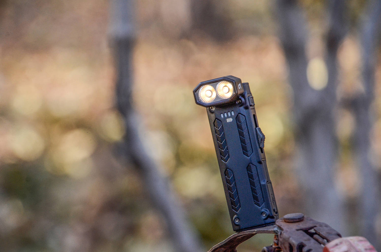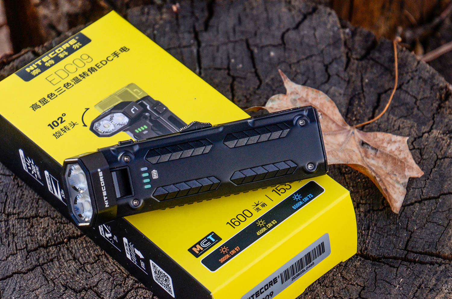 在 EDC 装备圈,手电的核心诉求从来都是 “便携与实用并存”,NITECORE奈特科尔作为拿下全球四大工业设计奖大满贯的专业品牌,更是在EDC型号下不断推陈出新,增加更多的实用性、专业性、便利性。 这就是全新的EDC09 高显色、三色温、转角、EDC手电,直接把 “场景适配性” 拉到满格——三色温自由切换、CRI97高显色、102° 可调灯头、磁吸+抱夹双便携设计、1600lm的高亮度,让它跳出了传统手电的单一功能局限。 MCT,三色温、高亮度、高显色EDC09用的是自主知识产权的UHE LEDs灯珠,而且是全新的MCT Multi Color Temperature多色温系统,能够实现常用的光色选择。 EDC09采用双眼并排设计,这就是NiteLab推出的MCTUHE灯珠,从外观上可以看出有橙色、黄色两种颜色对角分布,黄色是正白光色温,橙色是暖聚光色温,组合在一起,形成8核光源配置。 灯头表面采用定制的双眼TIR透镜,可以看出放射状的纹理,可以进一步扩散光线,使出光更均匀,配合不同的色温和显指,带了更舒适、柔和的照明效果。 正面看,不用对的很正,就能看出满杯的黄水,而且灯珠的细节也是左右对称、定位安装居中。橙黄分布被透镜折射融合,形成均匀的实际光路效果。 主流的恒流调光驱动电路,通电点亮之后,无论哪种色温、无论哪个档位,都没有肉眼不可见频闪,没有电路的啸叫声,也没有蓝光伤眼底,驱动效率高、稳定性好,长时间使用眼睛不会累。 从光斑的角度看,三种色温都是大范围的均匀光斑,中心主光斑与副光斑之间有渐变亮度的过渡带,颜色均匀、亮度均匀、光线柔和,正白光约6500K、暖白光约3000K、混合而成中白光色温为4500K。 暖白光具备CRI97的高显色指数,达到了设计、印刷等专业级别的运用,能够全面还原被照明物体的真实色彩,而且具有较高的光线穿透性;正白光色温为CRI,通档位光通量更高;混光中白为CRI83,是全能型色温。 光通量和显色性呈反向变化,暖白光显指高,所以最高光通量略低约为1050lm,正白光反之,光通量达到了最高1600lm,中白光效果都是居中,最大光通量达到1450lm,三种光色的光型和照明区域都很大,都是使用的泛光效果。 从照明距离来讲,也和光通量有关,正白光中心光强为5899CD,有效照明距离为153米;混光中白光也达到了147米;暖白光有125米,高显指带来更加舒适的视觉感受。 泛光主要用于铺路,带来大面积的照明区域,从EDC09的光线铺路效果来看,三种模式下都能把路面完全照亮,宽视野确实舒适,能够形成比较开阔的照明视野,前方的整体都被手电的光线铺满,助你看得更加开阔。 除此之外,EDC09还标配了一只定制的柔光罩,这样就变成了一个高显色、多色温的营地灯,带来较大范围的定点360°全方位照明。 102°,转灯头、强背夹、强磁吸EDC09作为全能型EDC照明工具,其灯头还设有机关,按照侧面箭头提示,向前推,就能改变灯头指向,形成与中轴的一定夹角,带来不同角度的照明。 这就是常说的拐角手电,EDC09的尾部平整,而且最大调整角度达到了102°,形成斜向下的照明方向,刚好可以让光线落在表面,放在地面、桌面,就是一盏实用的高显色台灯。 通过转动灯头,就能实现出光角度与手电的长度方向形成一定的夹角,再加上三种色温、以及柔光罩,就能带来更加多变的使用效果。 灯头采用转轴铰链,阻尼较大,可以稳定在0°~102°的任意角度,金属材质,电源在内部接通,多次使用也没有变松,也不用担心电路磨损。 EDC09的背夹升级为双向背夹,超大、超宽,夹持稳定,两点螺丝固定,方便拆卸,而且还带有手绳挂环,进一步提高EDC携带使用的便利性、安全性。 利用背夹,可以将EDC09夹在口袋背包等位置,方便携带,而且利用转角+102°向下的功能,挂在背包肩带、腰带上,可以形成解放双手的照明,成为随身的照路神器。 EDC09的底部是完整的一块平面,保证放置稳定,而且灯头朝下也能稳定放置,底部有明显的磁铁标志,这又解锁了EDC09的另一项实用功能。 利用尾部强磁,可以将EDC09牢牢吸附在铁制品表面,这在工厂、车间、设计室、仓储、车辆、甚至家里都能随处放置,形成定点、定角度的照明,光色、角度随手可调,真的太方便了。 双控制,简单换、随手推、随手按奈特科尔新一代EDC系列手电,使用的都是推扭主控+M键调整的方式,两个开关相互独立,推扭在滑轨之内,两侧都带有弧度斜坡,方便手指着力,总体行程15mm,共4个落点位置,。 M键位于推扭之上,内部是微动电子开关,方形设计,表面凹凸纹理,带来良好的手感,主要操作调整光色。 这两个开关放在一起比较科学,而且在侧面,易于着手,在推动推扭控制亮度、档位的同时,可以稍稍移动手指,迅速按动M键改变光色,以满足不同使用需求。 推扭在最底部,相当于EDC09的机械锁定位置,基本不会误开启,按动M键,就能点亮电量指示灯,一颗代表25%电量,一目了然。 按住M键,向前推一格,就打开了隐藏的1lm超低亮档位,这在室内晚上使用非常合适,亮度低再加上柔和,眼睛不需要时间去适应。 EDC09除了超低亮以外,有3个档位,再加上每个档位三种色温,一共有9个亮度模式,下图是3档位×3色温的变化情况,向前推一下推扭就增加一档,向后拉一下就退一档,双向调节非常方便,可以快速进入所需功能。 开机后,无论在哪种光色下,长按灯体M键,可以一键开启200lm的警示闪功能,5Hz的闪烁频率,而且也是同光色的200lm闪烁,这样就有了3种色温的警示闪,功能简直不要太丰富。 个人感觉EDC09这种推扭
