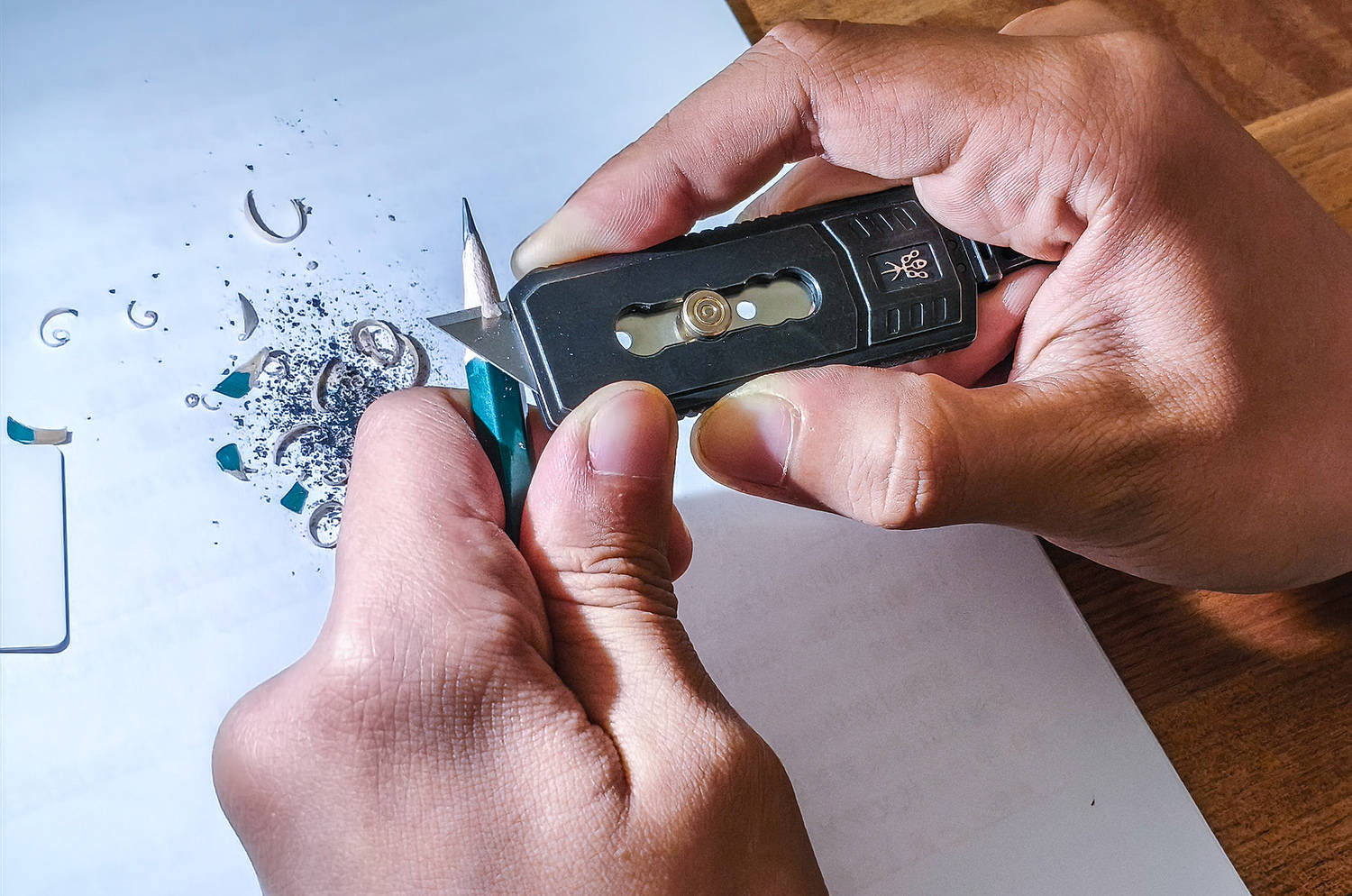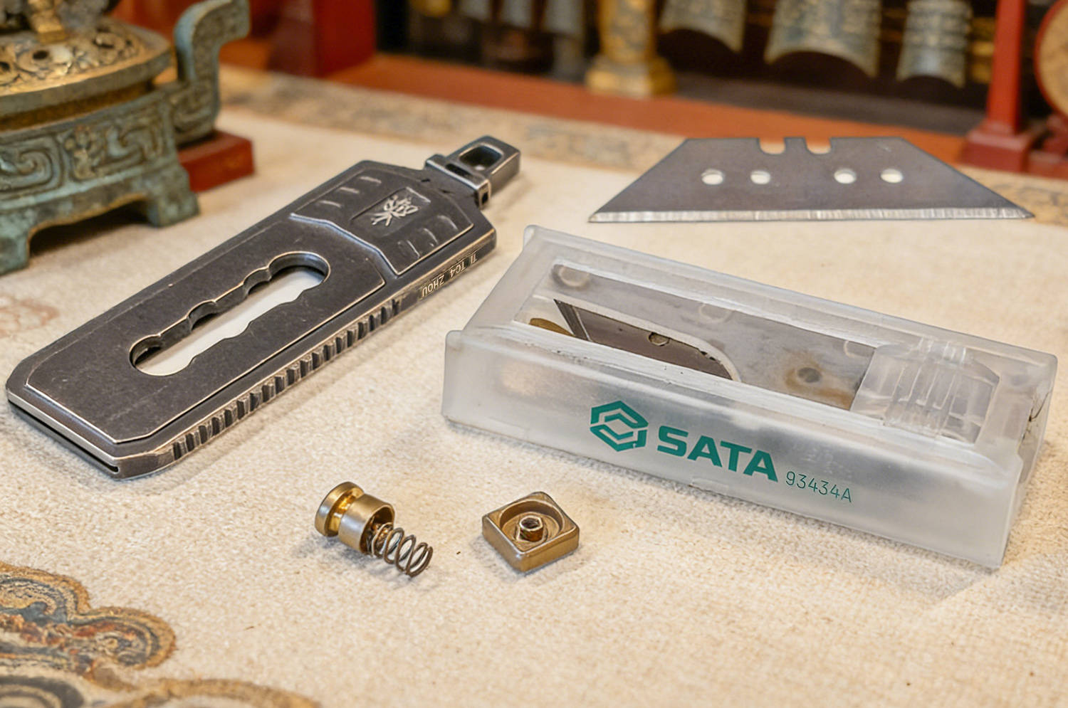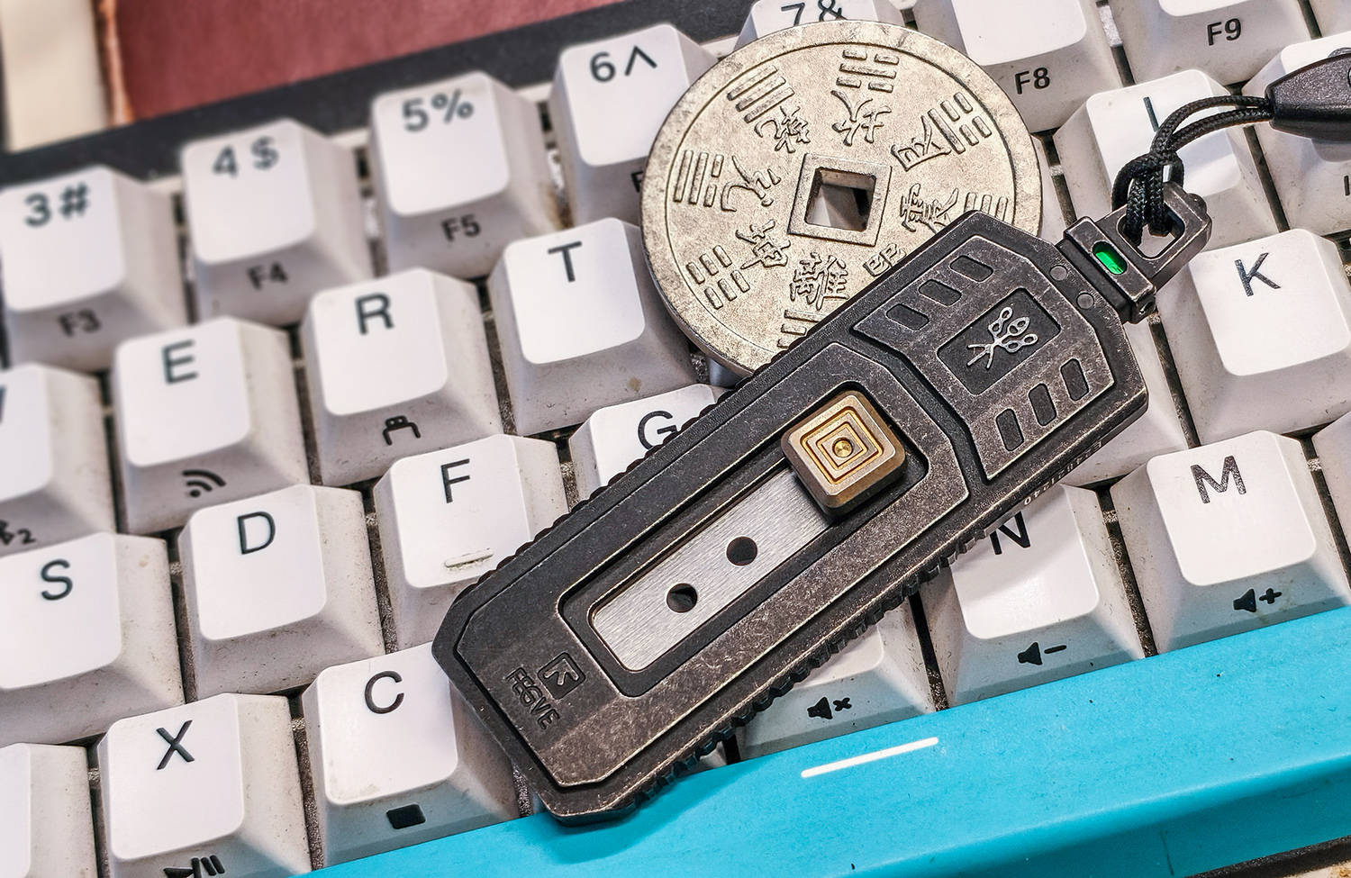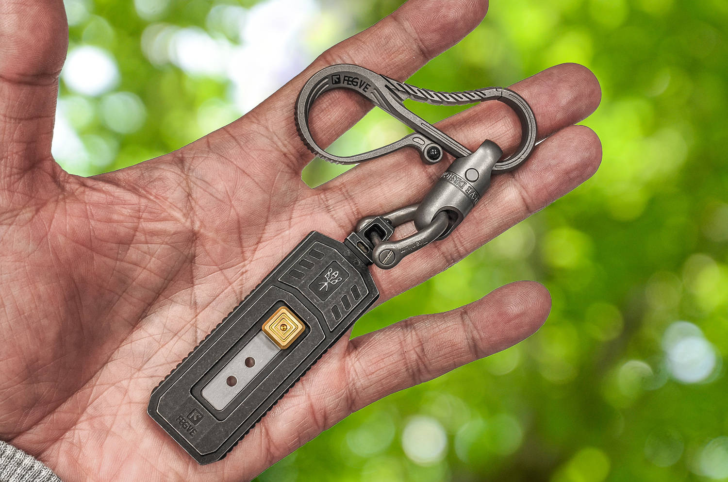 夏启立国,开华夏王朝之始,奠下文明根基;商继其后,文字成熟、甲骨铸史,神权与王权相融;周承商制而革新,制礼作乐、分封天下,确立宗法秩序;三代递嬗,共铸中华文明之初基;周化神权为人伦,融征伐于礼乐,使天下归心、诸侯有序,开华夏礼仪之先河。 FEGVE费戈“夏”裁纸刀,取周礼之魂,铸现代之器,一器在手,如执周室礼器,于文房案头间,裁尽纸墨纷扰,复见礼乐风雅,此非寻常工具,乃以器载道、以刃承礼的华夏文心。 以钟铸礼,以琴治乐费戈“周”最大的特色就是象形,以周制礼乐而承百代之统,启千秋之业,定华夏衣冠之序,立万古文明之基,周裁纸刀以编钟为形制,融钟鸣鼎重之韵,合礼乐法度之规,方寸之间尽显宗周之雅度与文房之风骨。 周的外形还借鉴了古琴的三转面,线条婉转有度,弧面温润流畅,既承古器雅韵,又合握持之姿,一器融编钟之礼、古琴之韵,于刚劲中见温婉,尽显周礼文质彬彬之美,古乐齐鸣、为你钟琴。 费戈周的长宽厚分别为78×29×4mm,全出状态长度98mm,小巧合礼、盈握相宜,薄如圭璧、宽合分寸,收则便携藏锋,出则利落裁纸,方寸间尽得周礼中正雅致之韵。 周的编钟之顶留有挂孔,形制古雅精巧,既取礼器悬鸣之姿,亦合日常随身之用,穿绳系扣可作挂饰,携行稳妥不占空间,于细微处见匠心,尽显周礼器用兼备的实用与风雅。 其下,还有一个通孔,可以对穿过1.5×6标准氚管,微光内敛不张扬,暗合周礼 “温润而泽” 之韵,日间隐于器身,入夜微芒自现,兼具装饰之美与实用巧思,细节之处尽显匠心。 良材铸器,巧构藏锋周的框架为TC4钛合金打造,CNC工艺切割打磨而成,质地轻盈坚韧,耐腐蚀不易变形,手感温润不冰手,整体线条利落规整,棱角处婉转有度,既保留金属质感,又暗合周礼中正平和之韵,尽显精工之美。 表面镀黑、石洗做旧,色泽沉敛如古鼎,质感厚重似宗周礼器,耐磨抗刮不留指纹,哑光肌理温润内敛,不耀锋芒却自带威仪,恰合周礼藏锋守拙之气度,愈用愈显包浆韵味。 钛合金具有高强度、轻量化、无磁性、亲生物等特性,周的净重约为28.8克,拿在手上轻若无物,一体式框架结构,保证了足够的强度,整体无冗余拼接,刚性十足握持扎实安心,兼具耐用性与手感,尽显周器严谨规整之礼序。 于周鼎之顶,还镶嵌一枚高硬度陶瓷珠,质地坚硬耐磨,应急之时可破窗求生,兼具文房雅玩与实用防护双重之用,刚柔并济,藏锋芒于礼器之中,尽显周文化外雅内刚的气度。 6mm厚度的钢化玻璃,只需轻轻一敲,即分崩离析,,陶瓷珠珠锋芒内敛,却能一击即破,应急自保从容不迫,文可裁纸案头,武能临危破险,一器兼具雅玩与防护,尽显周礼刚柔相济、动静相宜之道。 再看周的本体以及陶瓷珠,均毫发无损,足见材质之坚与工艺之精,携带安全、坚硬稳固、历击不损,既承周器厚重之质,又兼顾实用可靠,应急之余亦无损文房雅器之姿。 开合有度,裁切循法作为一款裁纸之器,周为推动式设计,收则和谐万邦,出则锋芒毕露,通过推扭带动推孔来实现出和收,方形推扭为“回”纹设计,兼具美观与防滑,金色表面彰显周之繁盛。 推扭为手拧对锁螺丝,其间还有垫片固定,以及弹簧蓄力,,结构紧实稳固,开合顺滑有度,回弹干脆利落,细节处尽显严谨工法,暗合周礼规整有序之韵。 周使用的是世达93434A四孔裁切片,标准制式,方便替换,通用性强无需特意定制,长久使用也能随时焕新,刃口锋利稳定,裁切干脆利落,兼顾日常实用性与长久耐用性,尽显以人为本的周制匠心。 周共有4个档位,档位清晰、定位牢靠,进退有度,暗合周礼节制有度、动静有序之精髓,一档完全收起,安全无伤,二档仅出约1.5mm,开箱一划即过,外开包装,内无损伤,合乎实用之道。 三挡为半开,出约11mm,适合精细切削,刃长适中、控刀稳定,既能保证锋利效率,又不易过伸误伤,尽显周制有度、分寸得当的礼乐之美。 四挡为全开,20mm,刃身尽展、出锋规整、切割顺畅,裁切厚纸、卡纸、塑封膜皆从容利落,力道足而不躁,一如周礼张弛有道,尽显刚柔相济的器物智慧。 执周工一柄,承礼乐千年,藏锋守拙,裁纸成章,刚柔兼备,雅器天成。