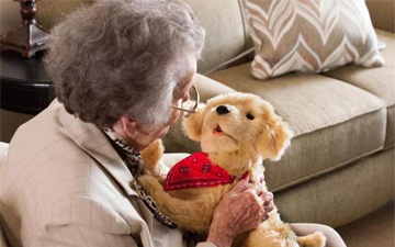 国外一家名为Hasbro的玩具公司开发出一款浑身金毛的机器寻回犬,主要用途是提供给老年人作伴。实际上,这已经是这家公司推出的第二款机器宠物产品了,它去年推出了一款机器猫。从一定距离之外看,Hasbro开发的这款机器狗非常逼真,但是它没狗狗那么活蹦乱跳,不会围着你团团转。虽然它不能接受用户的命令,但它可以叫唤并跟身边的人进行互动。当用户摸它时,机器狗表皮的感应器就会被触发,促使狗狗作出相应的反应。