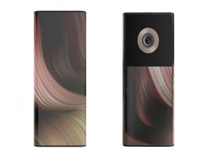 通过专利图片可以得知,该设备正面的瀑布全面屏采用了大曲率设计,边缘一直延伸至背面,手机背面的上半部分为单摄的摄像模组,下半部分为背部屏幕,整机设计比较接近MIX Alpha,额头和下巴设计极窄,一眼看去颇有“平民版MIX Alpha”的既视感。