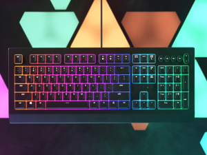 萨诺狼蛛 V2 薄膜键盘的坚固结构具备防泼溅功能,背部具备导线凹槽,可以保证桌面的整洁度。内置RAZER CHROMA RGB幻彩灯效,约1680万色RGB灯光,并且支持预设多种灯效与单键自定义功能。
