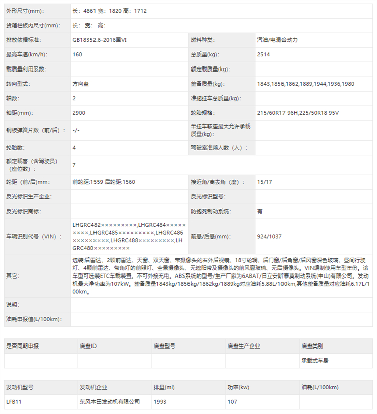 新车的长宽高分别为4861/1820/1712mm,轴距为2900mm。相比现款车型,仅车长增加了14mm,其它参数则保持不变。新车依旧采用的是本田第三代i-MMD混动系统,其中2.0L发动机的最大功率为107kW,传动系统匹配E-CVT变速箱。