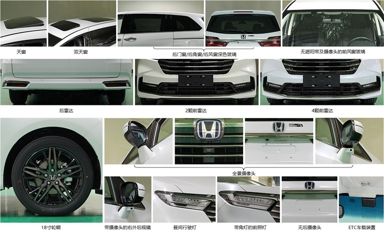 新款奥德赛部分车型将会有双天窗、后排隐私玻璃、全景影像、右侧盲区监测等配置。