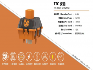 TTC 虎轴的手感特征,设计灵感来源于老虎捕食特征:凶猛、迅速而果断, 以消耗最小的能量来获取最大的收获。被誉为“山中之王”或“兽中之王”。猛如虎、快如电。TTC 虎轴特别适合于 高速打字、快速触发的应用场景。