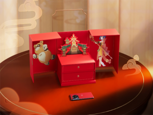 一加Ace2原神定制礼盒外包装是大面积的红色凸显香菱火元素,与穿插搭配的烫金工艺形成颇具金属质感的光哑对比视觉效果。礼盒为还原“食盒”效果,特别将开合处采用“菱”字磁吸锁扣,把手也采用金属打造。