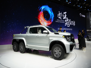 占据国内市场份额四分之一的长城皮卡,于2023年上海车展上大秀“肌肉”。发布中国品牌首个6X6超级越野平台,并基于该平台打造了中国首款6驱车型CYBERP!CKUP也一同亮相车展。