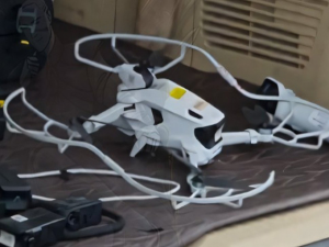 从曝光的照片来看,这款无人机采用的是白色的外壳,机头顶部有凸起,上面是一颗硕大的传感器,但是用来做啥的暂且还不晓得。或者说,这可能是它的镜头之一。因为根据上个月底曝光的工程机视频来看,无人机头部凸起的这块有一个看似是朝上的镜头,与其对应的还有一个朝下的镜头,这与360°全景相机的构造很像。