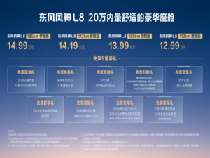8月11日,东风新旗舰、东风奕派科技全新战略车型——东风风神L8正式开启预售,预售价12.99万元起。作为“20万内最舒适的豪华座舱”,东风风神L8集东风之力,重新定义家庭用车的舒适与智能标准,只为照顾好每一位家人的舒适,让全家都满意。东风风神L8不仅为主流家庭用户带来豪享、舒适、智能、安全的用车体验,在9重预售豪礼的加持下,更是进阶主流家庭的“质价比之王”。