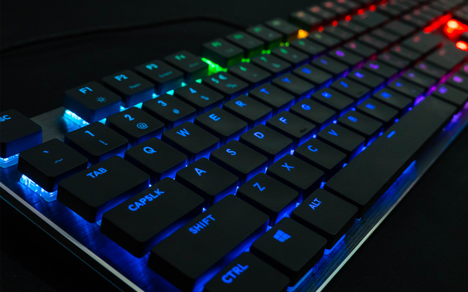 SK650搭载的MX Low Profile RGB轴体配合上专为其设计的大面积键帽,RGB光效的确比起普通的MX轴机械键盘更加绚烂。原生的LED灯直接在轴体内部发光,效果非同凡响。