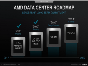 AMD已经在台北电脑展上发布了Zen 2架构的消费级处理器,下一代Zen 3距离我们还有一定的时间,不过关于Zen 3架构的处理器也曝光出了一点消息。AMD已经对外确认Zen 3将会采用目前最先进的7nm+EUV光刻工艺,同时EPYC的代号为米兰,至于再下一代的Zen 4处理器代号则叫热亚那。