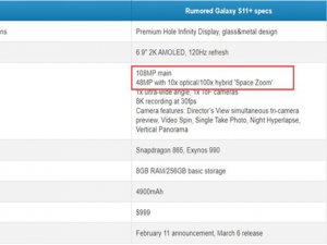 对于消费者来说,明年上半年最值得期待的手机便是三星的Galaxy S11了,随着2020年的临近,关于Galaxy S11的消息也是越来越多,前几天网上曝光了S11的外观,而现在关于S11手机的相机参数又被曝光了出来。消息称S11将会支持10倍光学变焦以及100倍混合变焦,十分地给力。