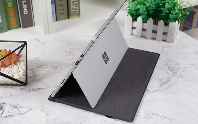 键盘通过真机开模确保匹配性,与Surface Pro 3/4/5/6可以达到最好的兼容性,以Surface Pro 4为例,卡扣和磁吸的设计让它安装后非常牢固稳定,可以说是完美匹配,