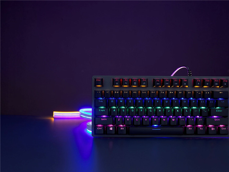 雷柏V500PRO采用了混彩背光系统,六色条形彩虹的魔光将V500SE的魅力发挥的淋漓尽致,吸足玩家的眼球。通过FN组合键可触发7种背光模式,给你不一样的睛彩律动。