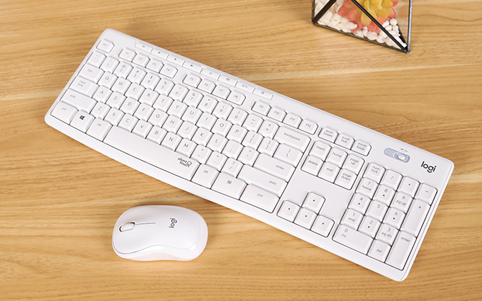罗技MK295无线键鼠套装主打静音设计,有黑白两个配色,我们评测的这套为白色款,它是由M220无线鼠标和K295无线键盘组成,外观设计为简约大方的风格。